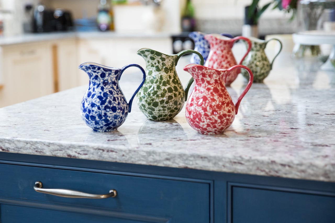 Just one of a number of items that form the Splash collection, this blue jug is the work of artisan pottery designer and renowned ceramist, David Birch. Its large handle and pouring lip make it easy to serve milk with hot drinks at mealtimes or during afternoon tea, limiting the chance of spills.