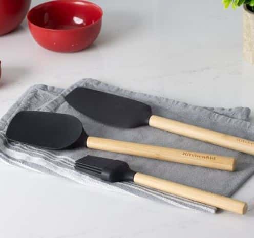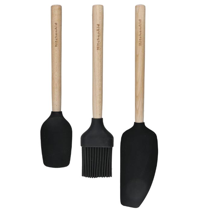 KitchenAid 3-Piece Birchwood Baking Set Black with Pastry Brush, Spoon Spatula, and Mixer Spatula